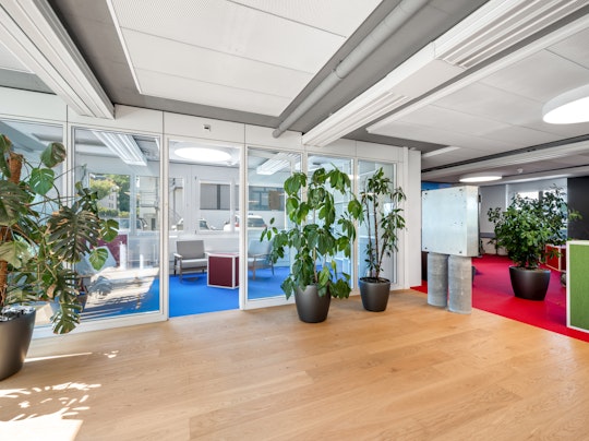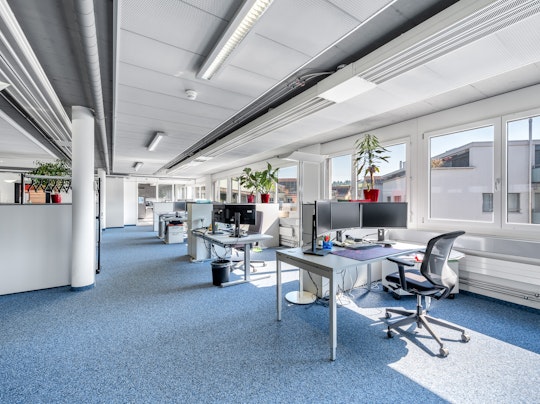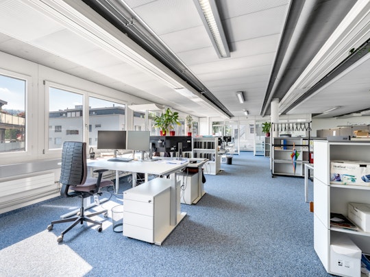 Das Bürogebäude, erbaut im Jahr 2005, ist Teil einer Gesamtüberbauung und bietet zeitgemäss ausgebaute Büros mit flexibel nutzbaren Open-Space-Bereichen. Fünf grosszügige Büros mit einer Fläche von rund 275 m² sind mit einer Kleinküche und einem Aufenthaltsraum ausgestattet. In den Obergeschossen 1 bis 4 ergänzen vier kleinere Büroeinheiten mit jeweils rund 60 m² das Angebot.